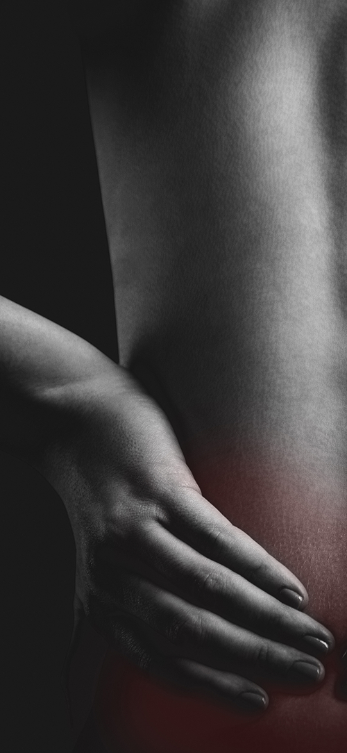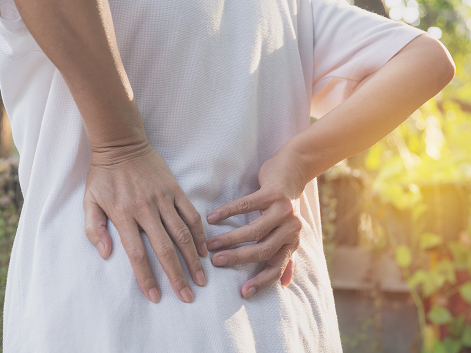 허리를 앞으로 굽히면 아프다. 앉아있을 때 통증이 심하고 서있거나 걸으면 편해진다. |